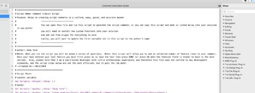 This is a demonstration of a crude yet simple process I use to create comments for my scripts. I am by no way a professional developer so it goes without saying that this method is not the most efficient way of accomplishing the task, but it works.