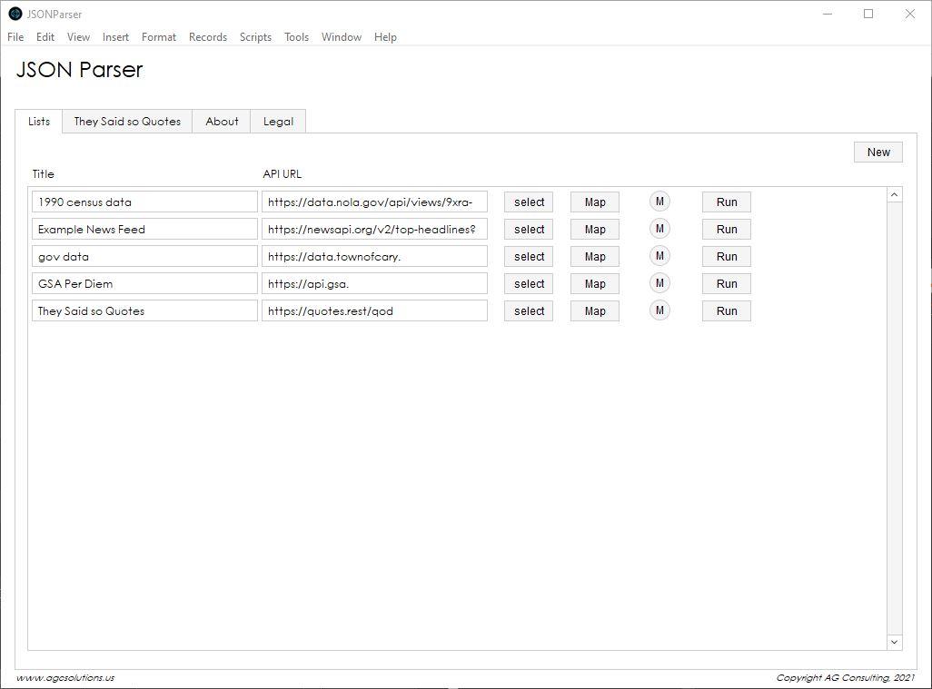 This tool is for the mapping and testing of JSON API calls. The user can first map, capturing a list of names returned within a result set, and they then can also import a mapped result set to compare to their own solutions result set for the purposes of trouble shooting.
