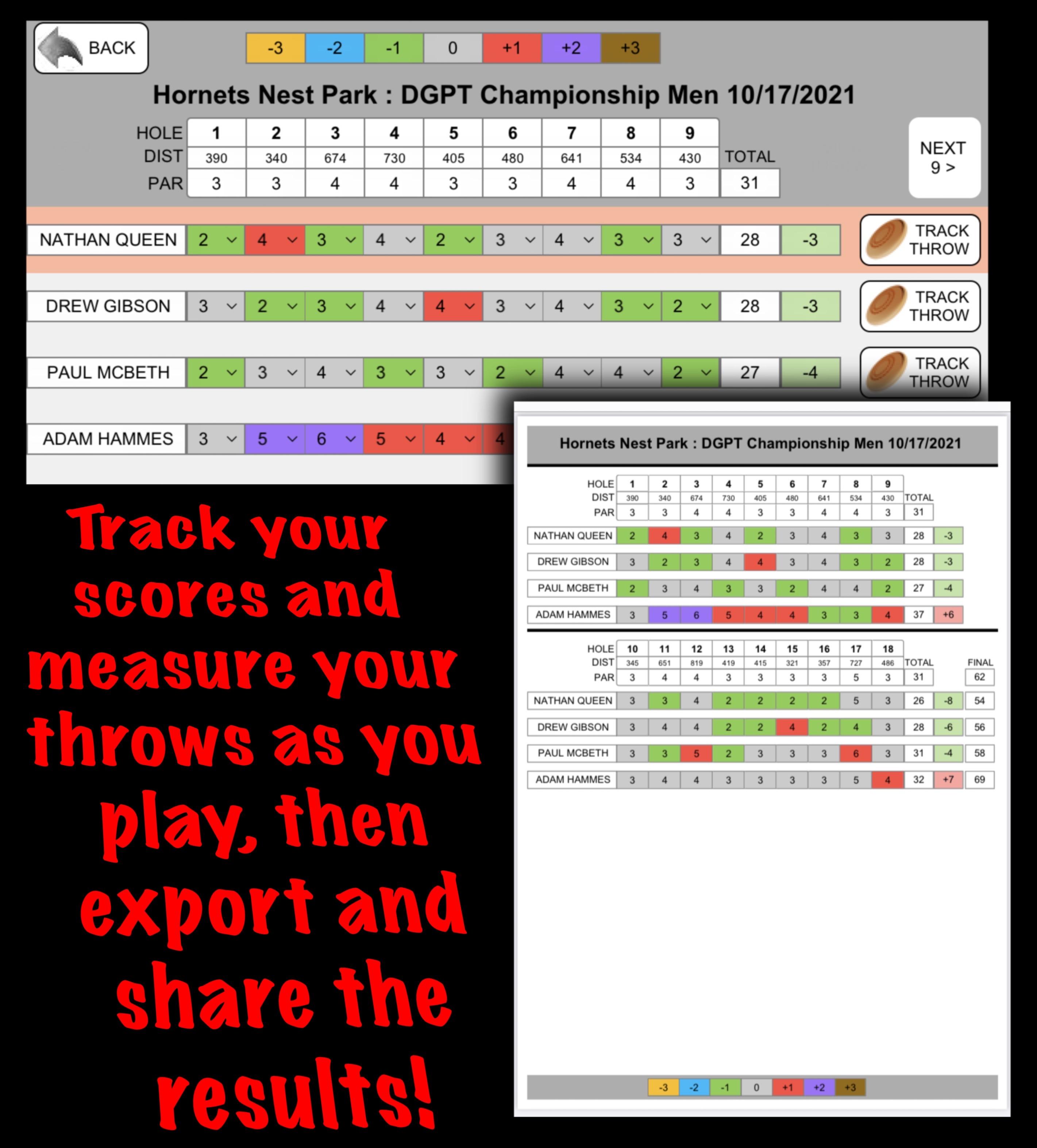 •Keep track of your scores as you play, up to 5 players, and measure distances of your throws using your iPhone's GPS