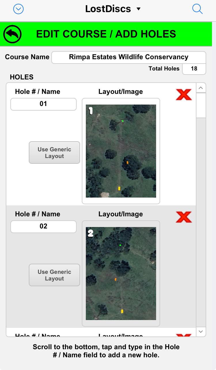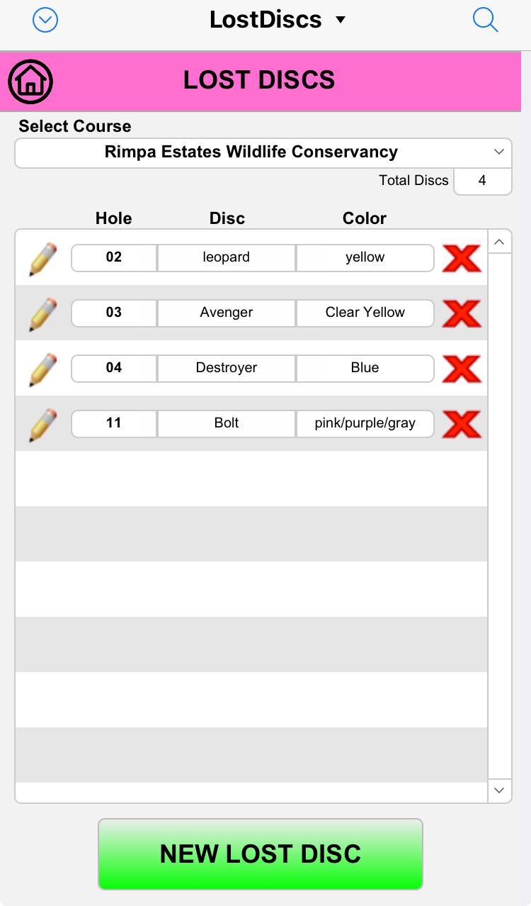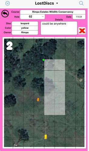 A solution for tracking lost disc golf discs on a course. It uses a grid over an aerial view to mark possible locations.