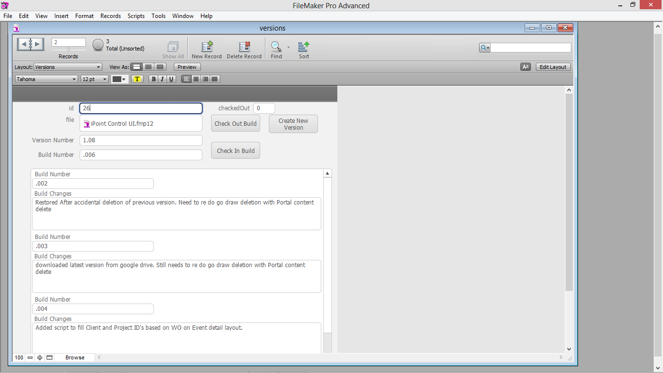 This is a simple file that can help you with version control. If you work from different locations or use different computers it can get frustrating keeping track of the most current version. I tried drop box, but had many issues of conflicting copies and found myself repeating hours of work due to poor version management. This file will allow you to have a secure location to keep your file. To work on a file you must check it out, and minimize the version control file. The Version Control file will not close until you check back in your file. It automatically updates the build number each time you check in your file and also requires a brief description of changes made. By hosting the version file you will always be working from the most recent project file and it will be kept in a central storage location. I made this file for myself and you may use a very different numbering or tracking method, so feel free to alter this file as needed to suite your needs. Please let me know if you encounter any bugs!