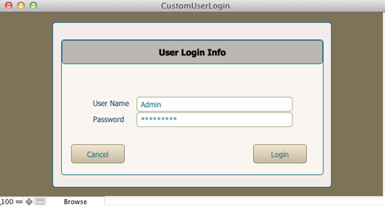 "Custom User Login Template" is a FileMaker Solution that provides user to use custom login process of user rather than to use default FileMaker user login dialogue. The solution is compactable and workable with FileMaker Pro 12.