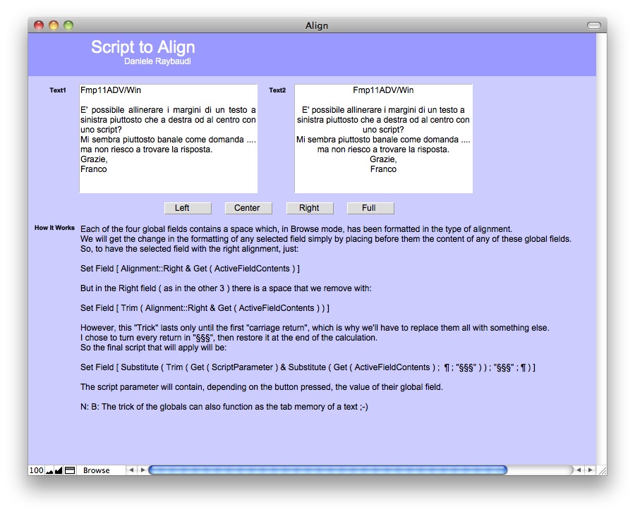 FileMaker lacks of a function to align text.