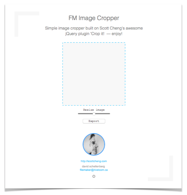 FM Image CropperSimple image cropper built on Scott Cheng's awesome jQuery plugin 'Crop it! — enjoy! - osX 10.11 and FMP v14 tested only.- keep DB and other files in the same folder. What's New in Version 1.0.0 See changelog Released October 17, 201510 yr No changelog available for this version. 1.0.0 1.0.0 October 17, 201510 yr