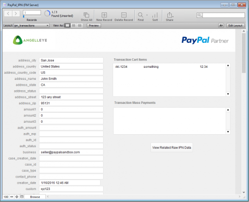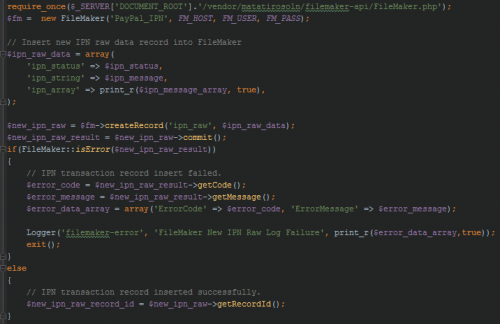 Our FileMaker PayPal IPN solution connects directly to FileMaker Server hosted databases using FileMaker’s PHP API. This provides instant, seamless integration of PayPal IPN into FileMaker.