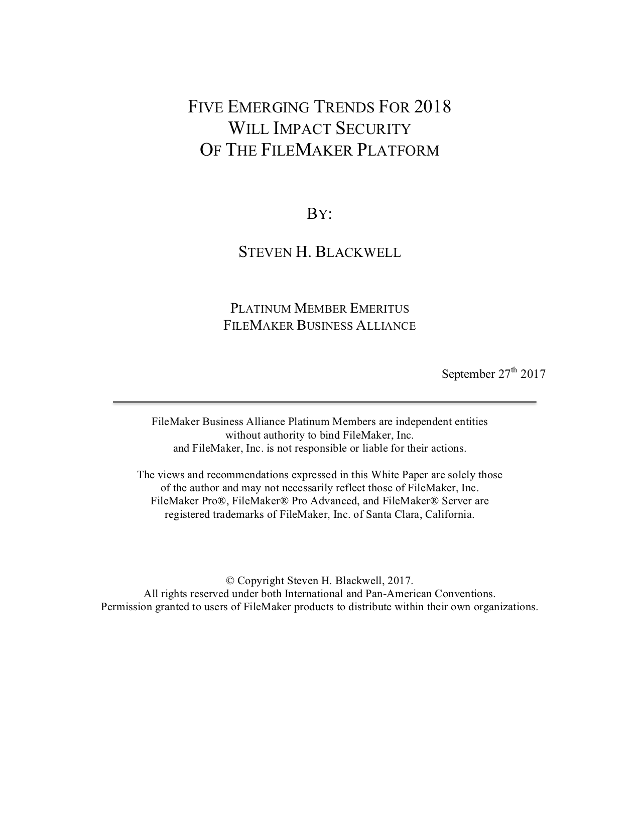 With the advent of a new Fiscal Year for the FileMaker Developer Community, we will experience five emerging trends in FileMaker Information Security. Each of these will likely have specific impact on developers, on our clients, on the Platform, and on the larger business environment in which we operate. Cumulatively and symbiotically, the magnified impact of the five will have the potential to alter many long-standing practices and conventions.