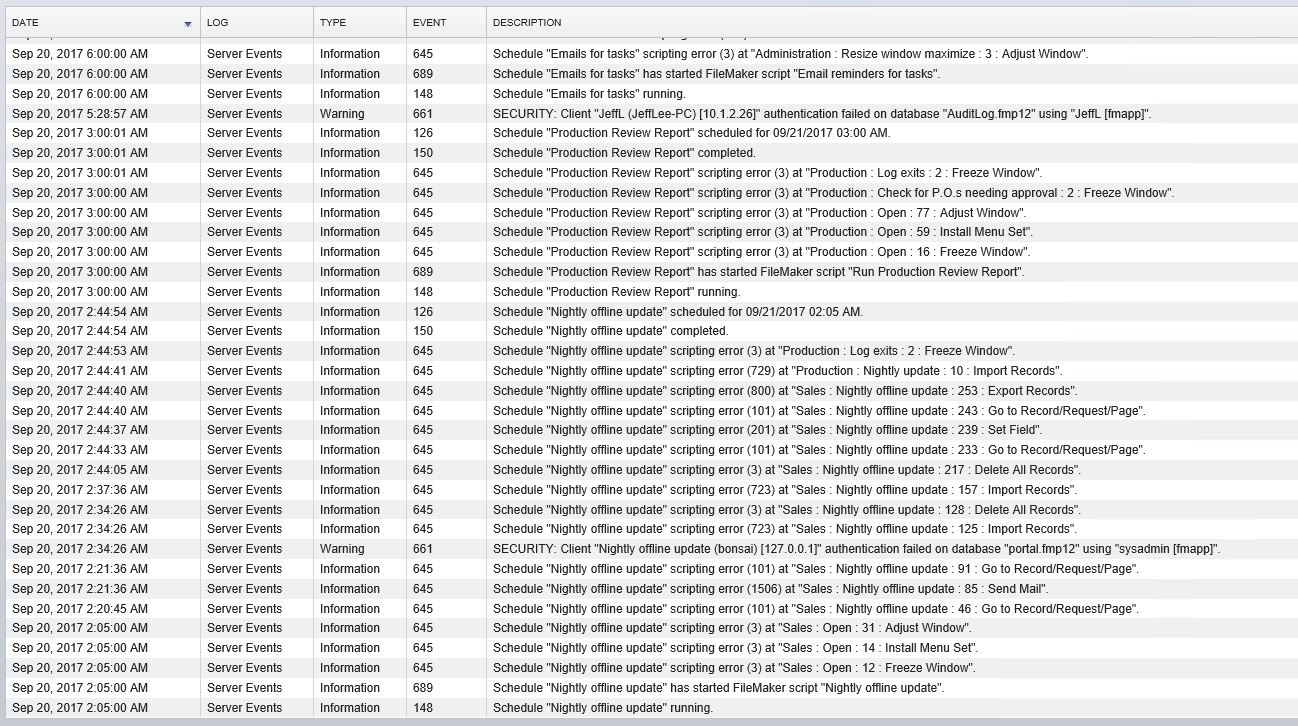 Cable Posted September 20, 2017 Posted September 20, 2017 I'm having multiple connection issues with FileMaker Server 16 running on a Windows 2016 VMWare server. Background: I had my solutions running on a virtual server hosted with FMS 15. I started to have problems with overnight scripts not running and random slowness. My VMWare vendor suggested moving FileMaker to a new virtual server. I figured as long as I was moving I might as well upgrade to FMS 16. That process was completed yesterday. The old server was called Bloodgood and the new one is Bonsai. I'm still having problems with my overnight scripts running and I think they're related to additional problems I'm having. I have a SSL certificate for the server. When I log into a database using FMPA 16 on the server, I get repeated errors that "the connection to fm.willowaynurseries.com:5003" is not encypted". I'll check off the box to always permit connection and hit the connect button and the lock will turn green. After a bit (seconds to minutes) the lock will turn orange and I'll get the connection message again. It is noteworthy that the SSL cert is ties to willowaynurseries.com and when the server was on Bloodgood if I tried to connect using the Remote button and let it find the local.Bloodgood server over the network I would get the connection error message but it didn't specify a port and once I told it to allow the connection I'd have no further problems. Also, if I open one of the overnight scripts, it shows that same message but also shows that scripts referenced in other databases are "unknown" (see attached). As I scroll through the script it will also pop up an "open file" dialogue box, but won't tell me what file it is trying to open. Even more oddly, none of this happens if I'm using FMPA 16 on my computer. Only if I use it on the server. Does anybody have any idea what might be happening or how to troubleshoot/resolve?