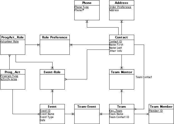 Ender Posted March 1, 2005 Posted March 1, 2005 Ho Rainy Pass! Well, loops are often present in ERDs (see attached example.) As far as evaluating the ERD for problems, you have to double check every relationship to make sure the one-to-manys are in the correct direction. These get flipped around when you add join tables, so it's sometimes confusing. Then, it's best to get rid of the many-to-manys, and consolidate the one-to-ones. These types of relationships are rarely needed, and should be used with only careful and deliberate thought. Finally, I would say that the ERD need not cover every relationship your solution is going to need. Just diagram the primary relationships; mostly the ones that are used by the data. Relationships that are used just for interface do not usually need to be in the ERD.